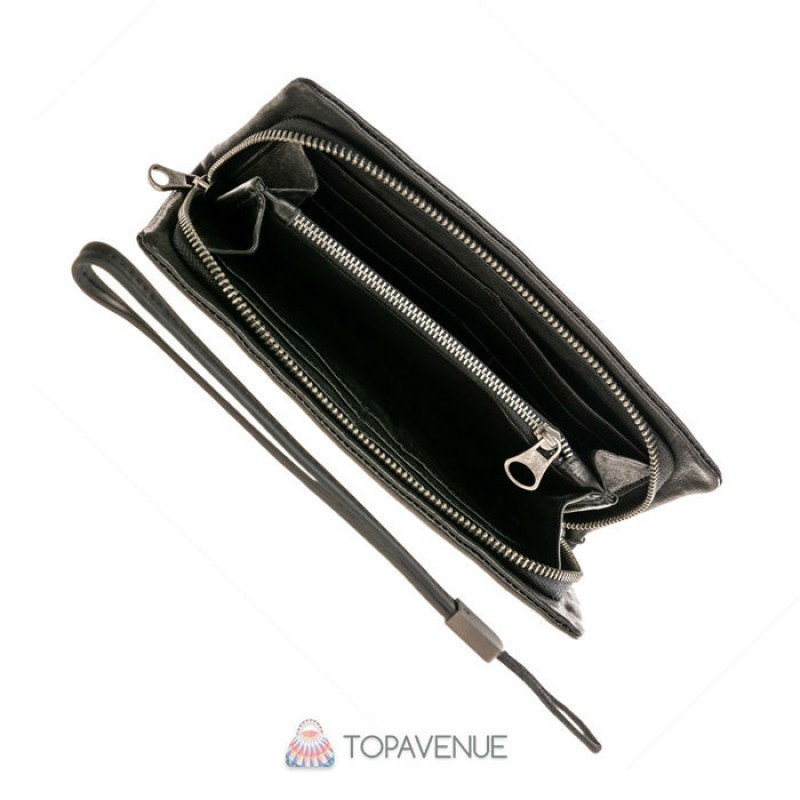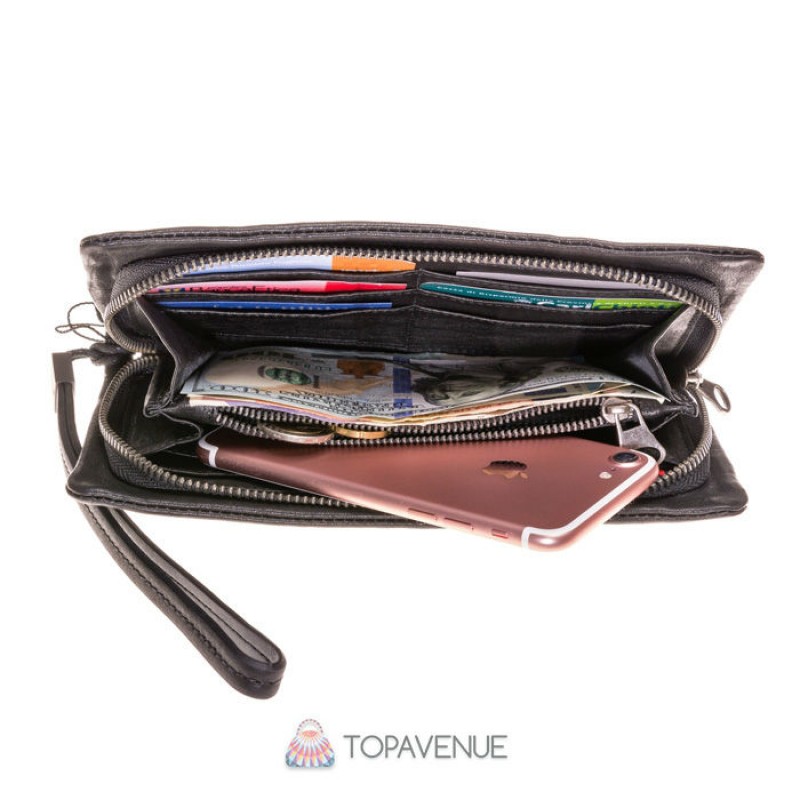 - Внутри: 2 отделения для купюр разделенные карманом-перегородкой на молнии, 12 кармашков для карточек, 2 потайных отделения для купюр.