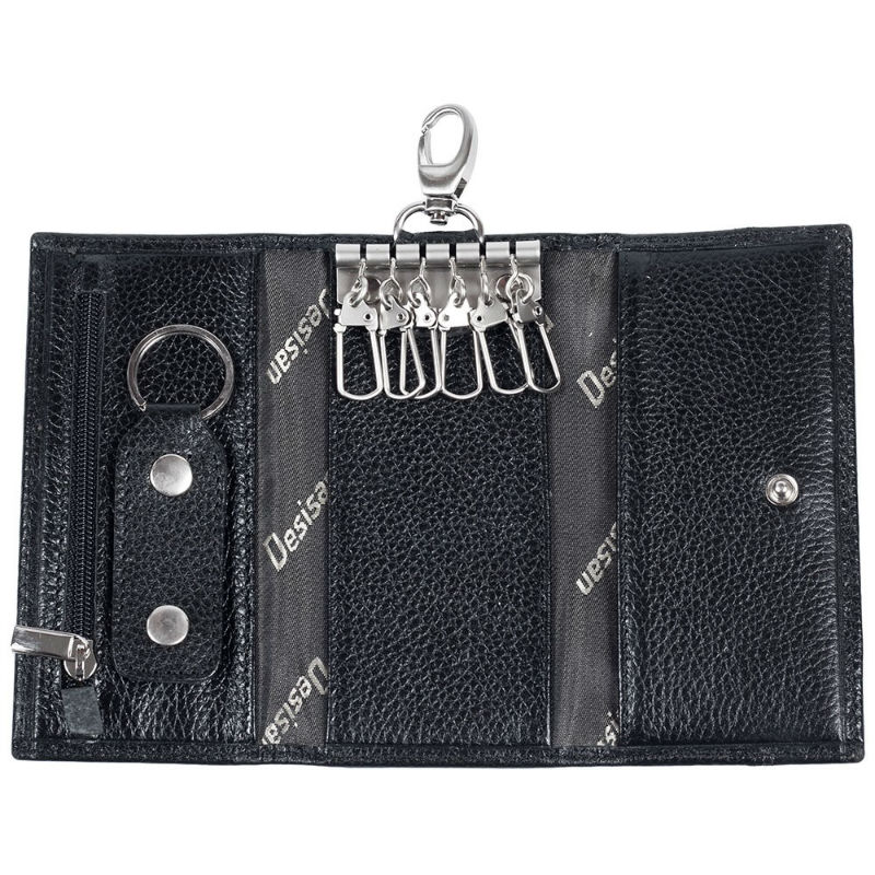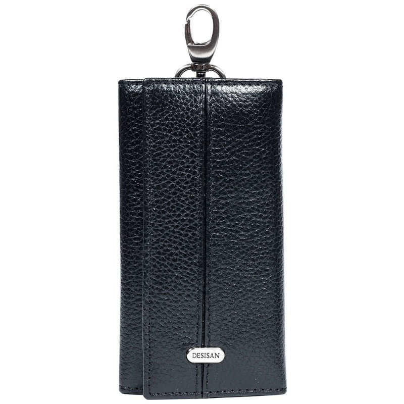- Практичная ключница кожа Desisan 203-01 черный мелкий флотар.