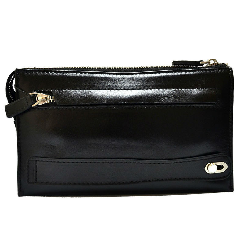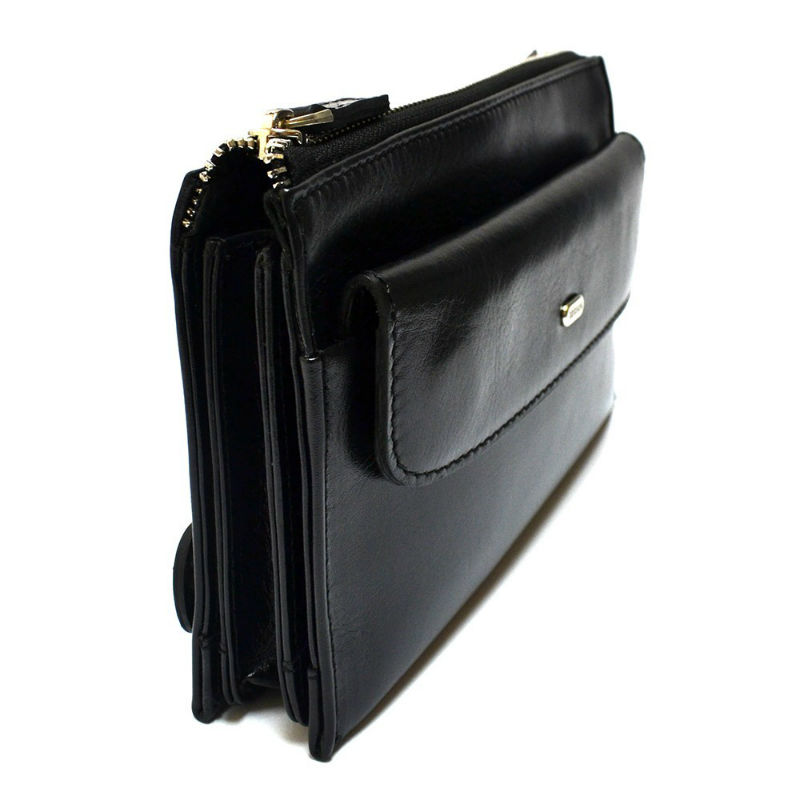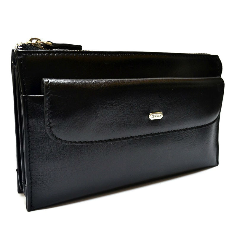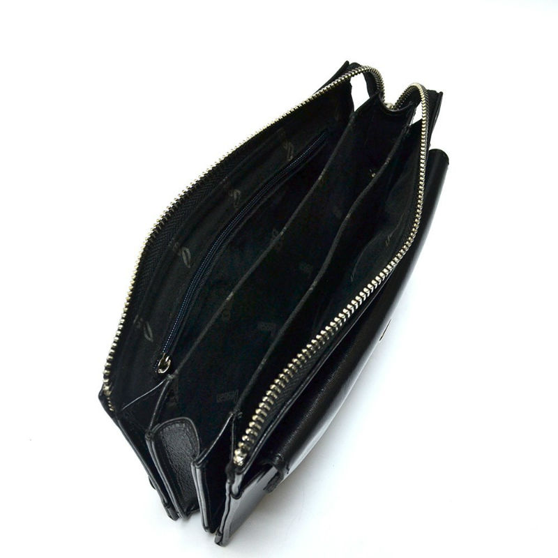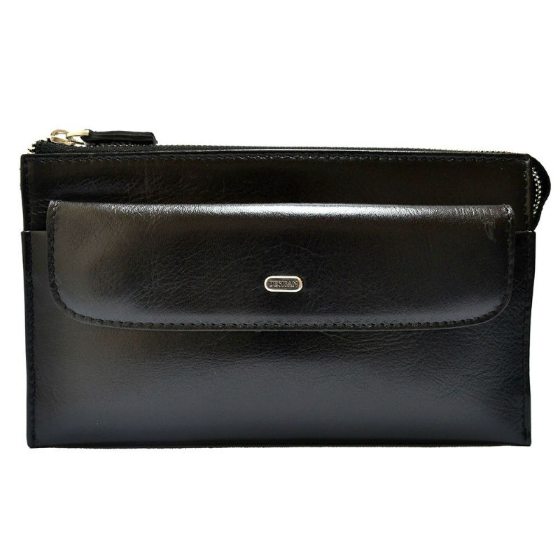 - Кистевая барсетка-клатч DESISAN 251-01 выполнена из гладкой натуральной кожи черного цвета.