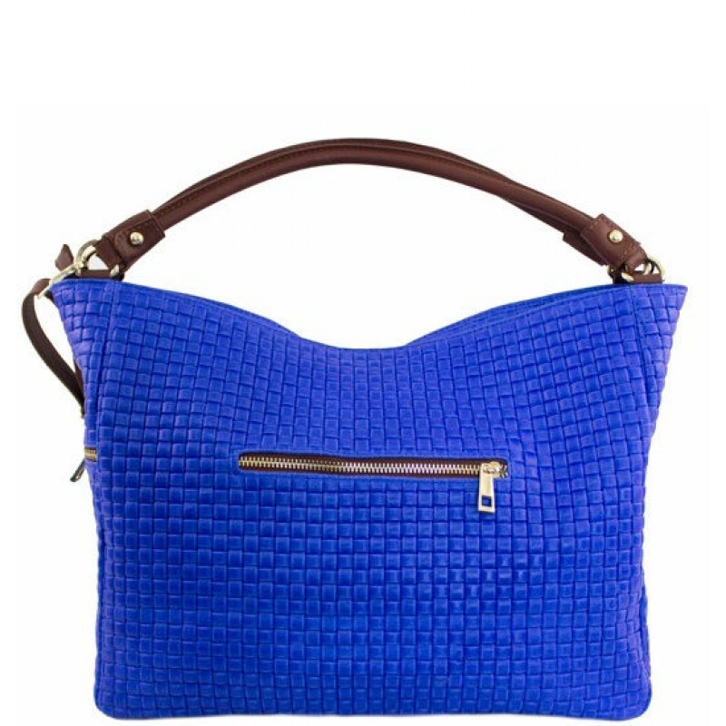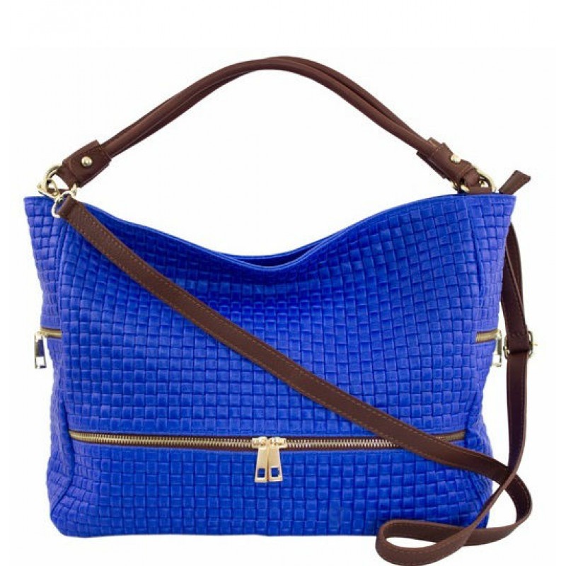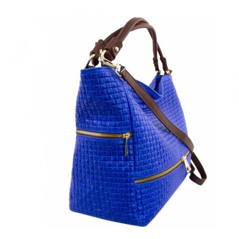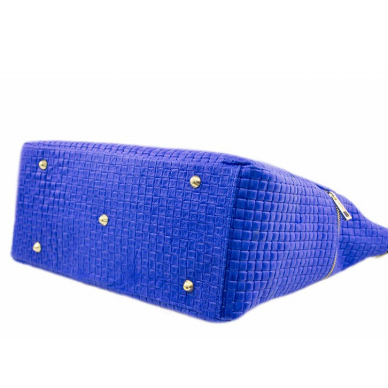 - Женская сумка BC215-blue синяя изготовлена из натуральной кожи с тиснением "квадратиками".