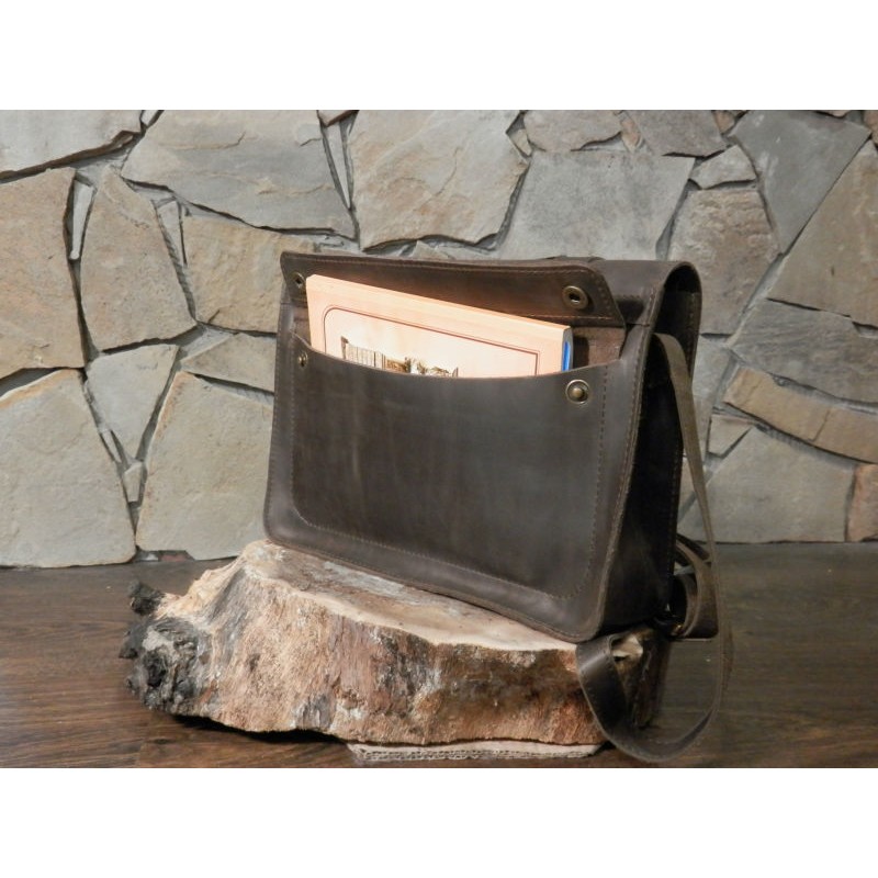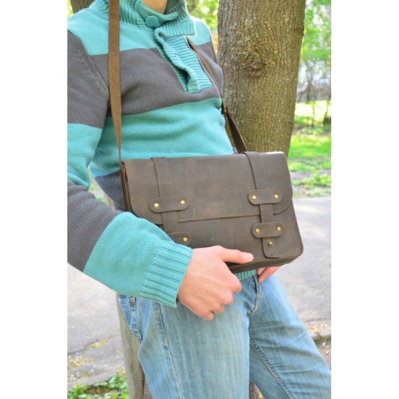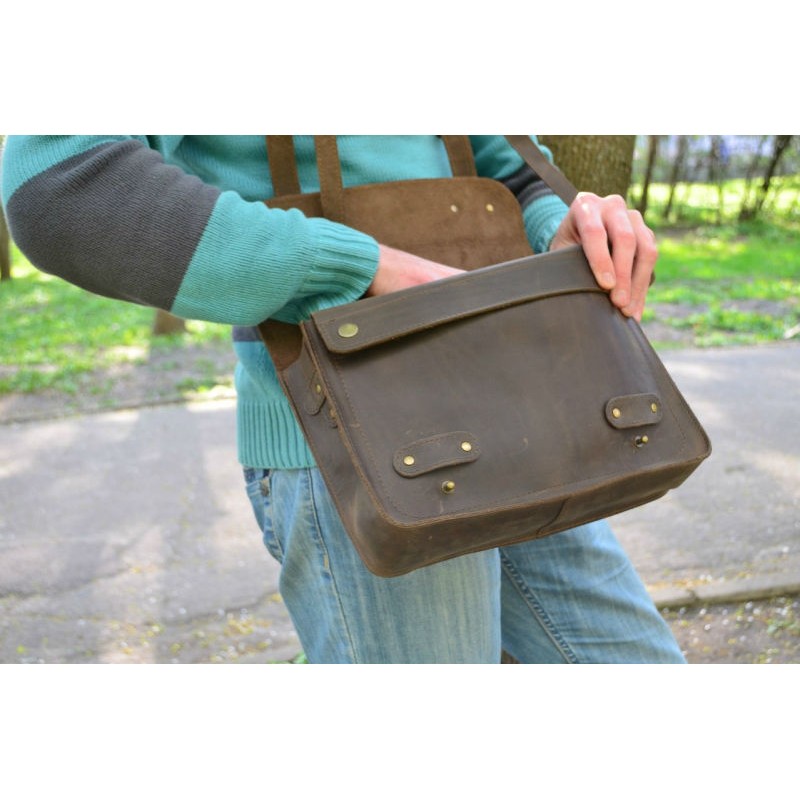 - Сумка 866051 изготовлена из натуральной винтажной кожи коричневого цвета.