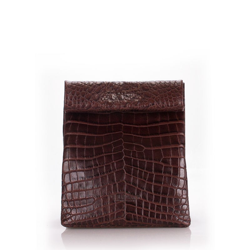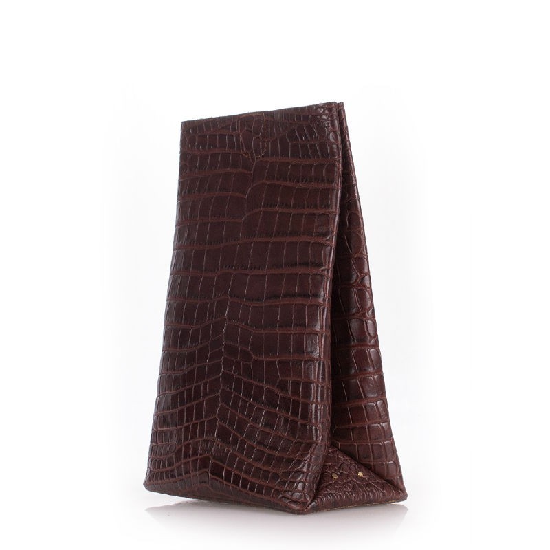 - Кожаная сумка-клатч POOLPARTY Lunchbox aligator-lunchbox-brown коричневого цвета.