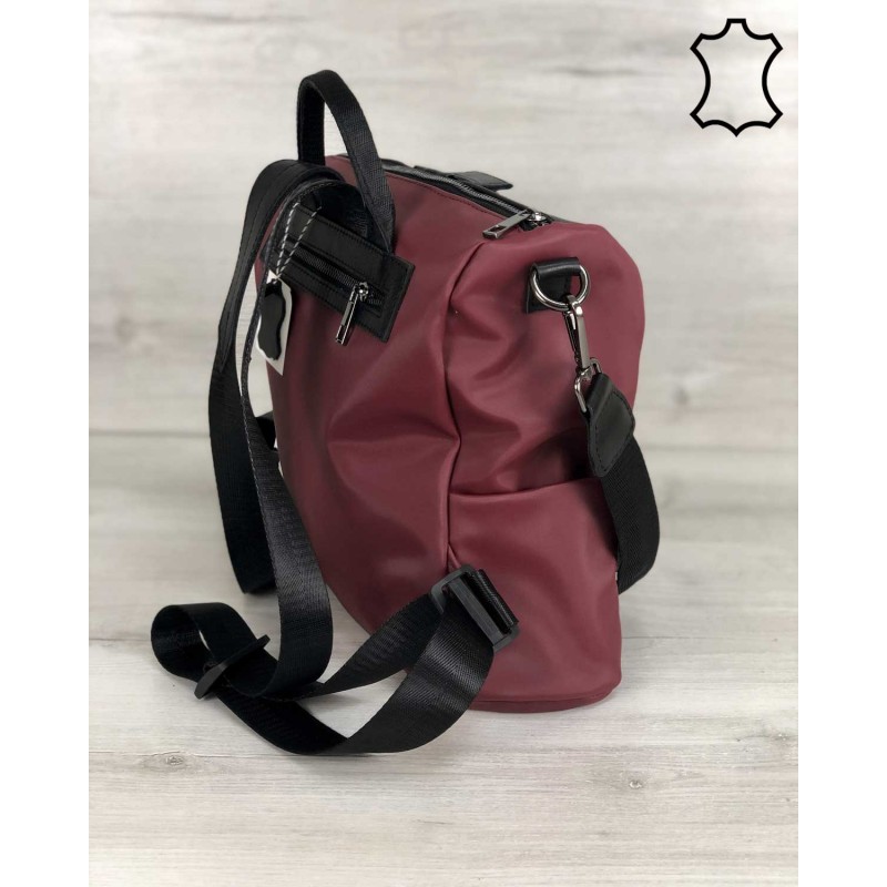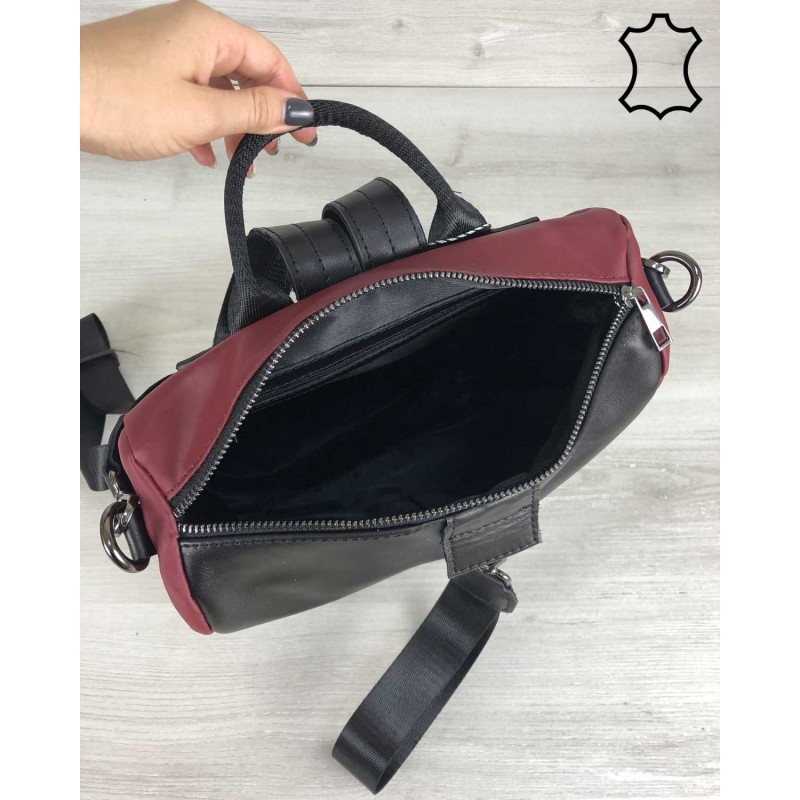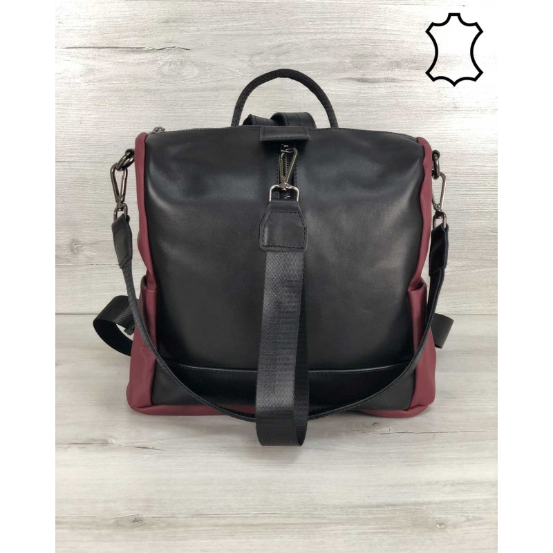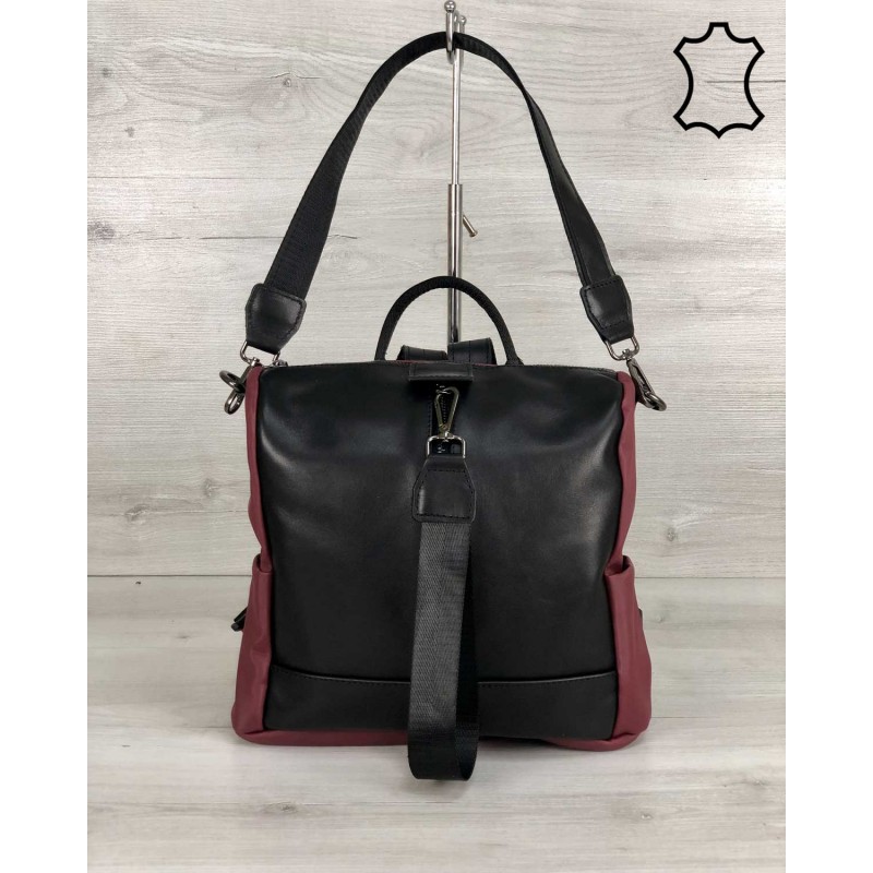 Кожаная сумка рюкзак «Angelo» черный с бордовым Welassie K4577, натуральная кожа высокого качества в сочетании водонепроницаемой тканью.