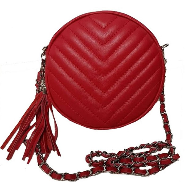 - Симпатичная круглая кожаная сумочка Bottega Carele BC329-red красная.