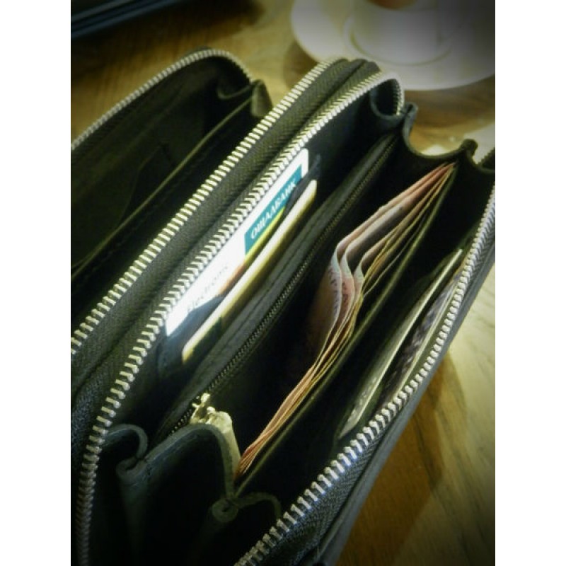 - Под каждой молнией находятся 3-и отделения для купюр, 6-ть карманов для карточек, один карман на молнии для монет.