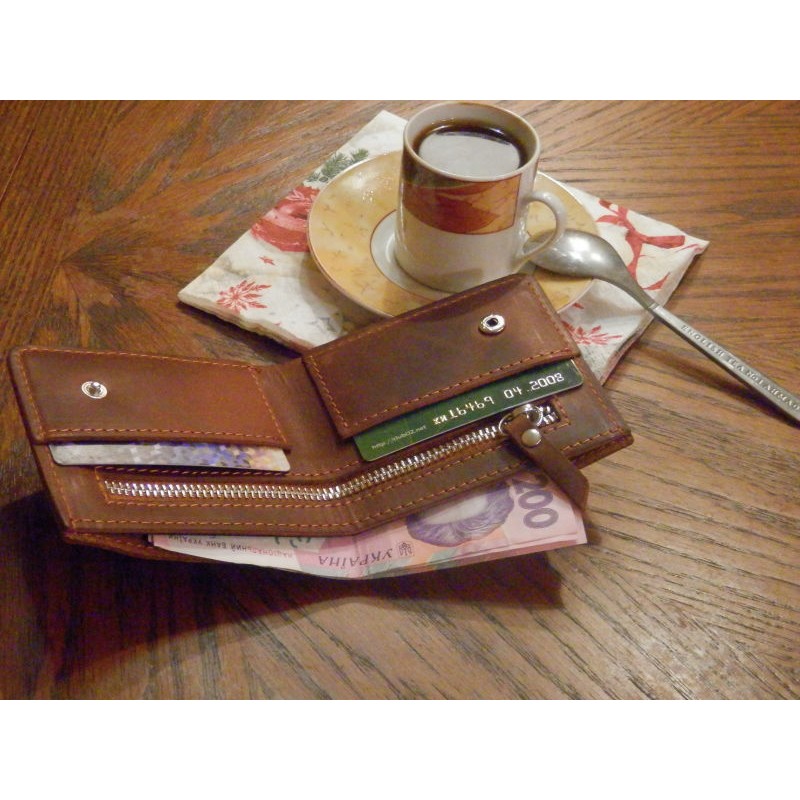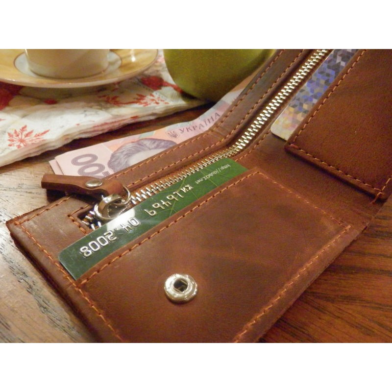 - Кожаное портмоне 111065 цвета "коньяк" изготовлено из гладкой натуральной кожи "crazy horse".