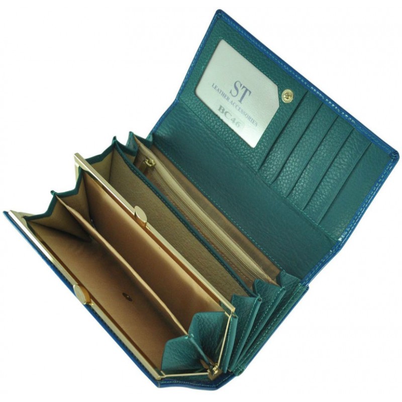 - Кожаный женский кошелек ST BC46 BLUE синий из натуральной лакированной кожи.