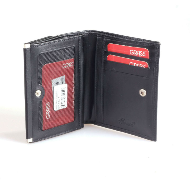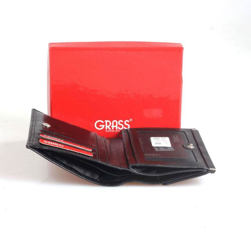 - Женский кожаный кошелек GRASS 123-1 черный сделан из гладкой натуральной кожи.