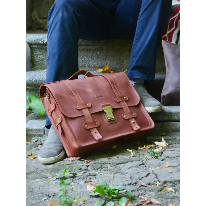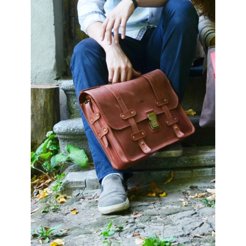 - Сумка-портфель 869065+ цвета коньяк выполнен из натуральной кожи «сrazy horse» с эффектом состаривания.