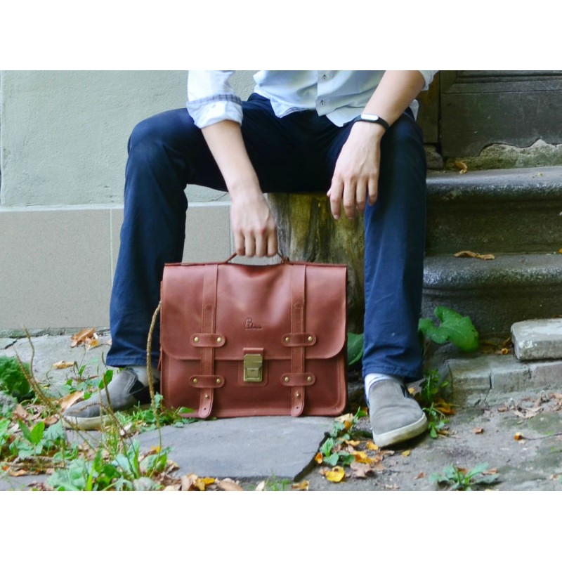 - В портфель помещается ноутбук 15,6", бумаги и папки формата А4, а в карман на кнопках под клапаном вмещаются мелкие аксессуары и личные документы.