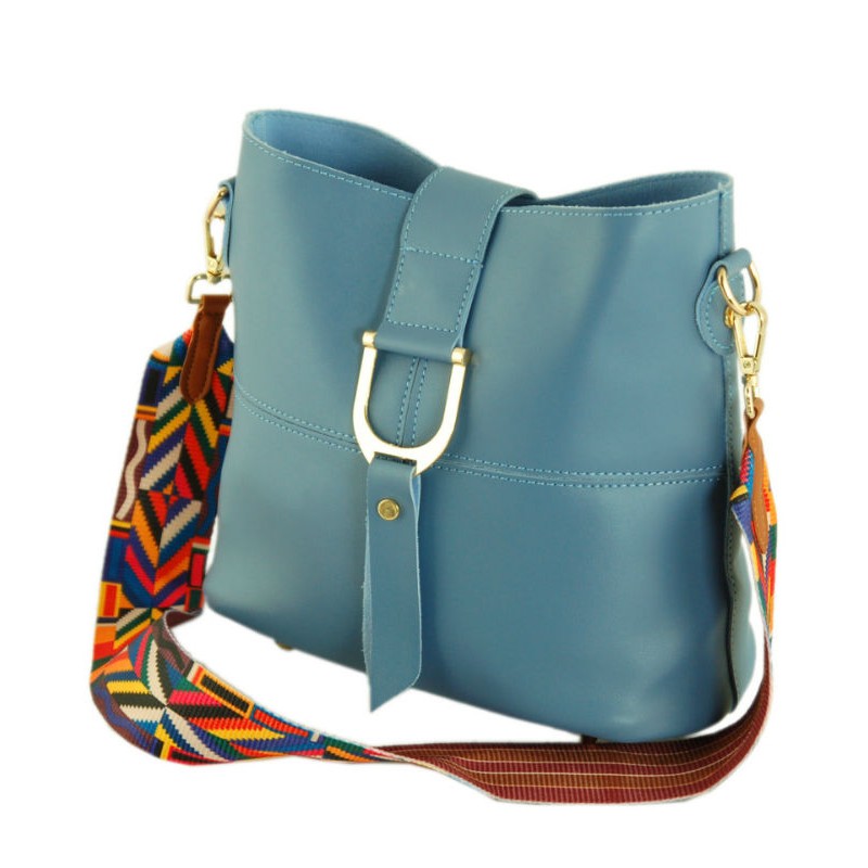 - Женская сумка на плечо с клатчем-вкладышем и широким разноцветным ремнем.