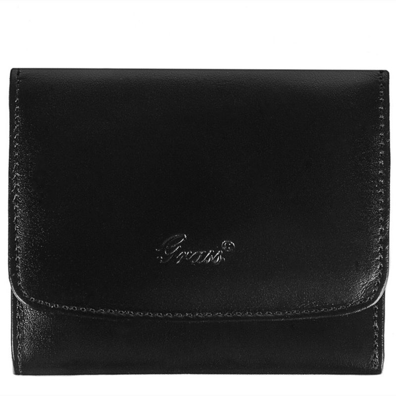 - Компактный кожаный кошелек женский GRASS 171-1 черный гладкий.