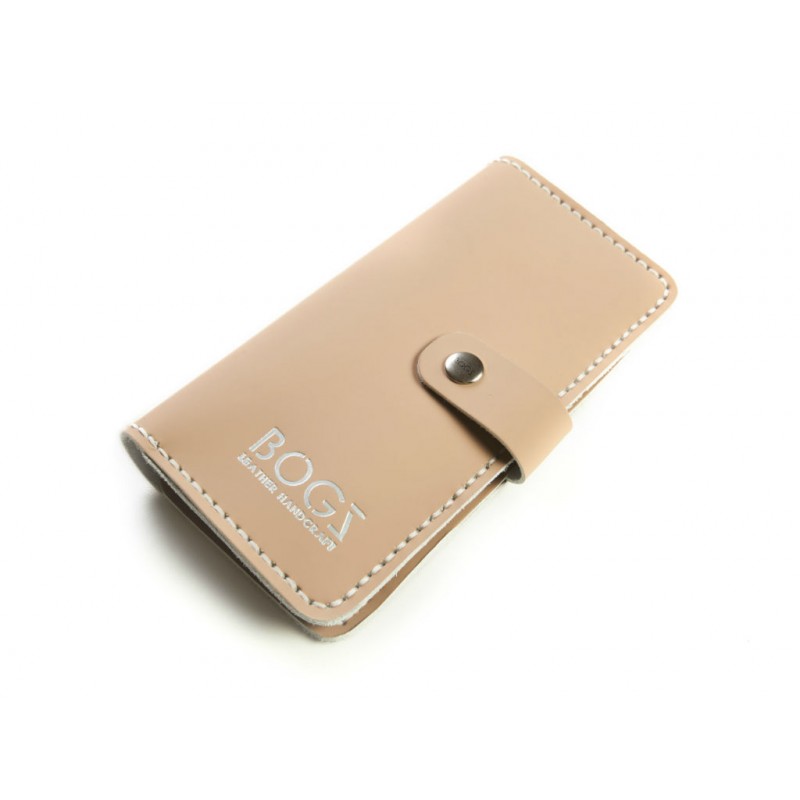 - Кошелёк кожаный BOGZ Long на кнопке P14M14S4 выполнен из бежевой матовой кожи, прошит белой нитью.