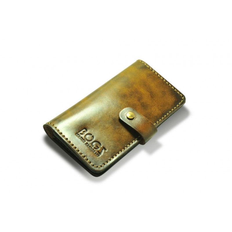 - Кошелёк кожаный BOGZ Long на кнопке P14M2M5S2 из лаковой коричневой натуральной кожи.