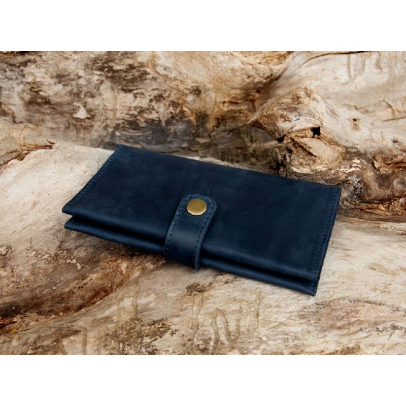 - Вместительный кошелек Wellbags "Wolf blue" (P006.3) синий из натуральной кожи.
