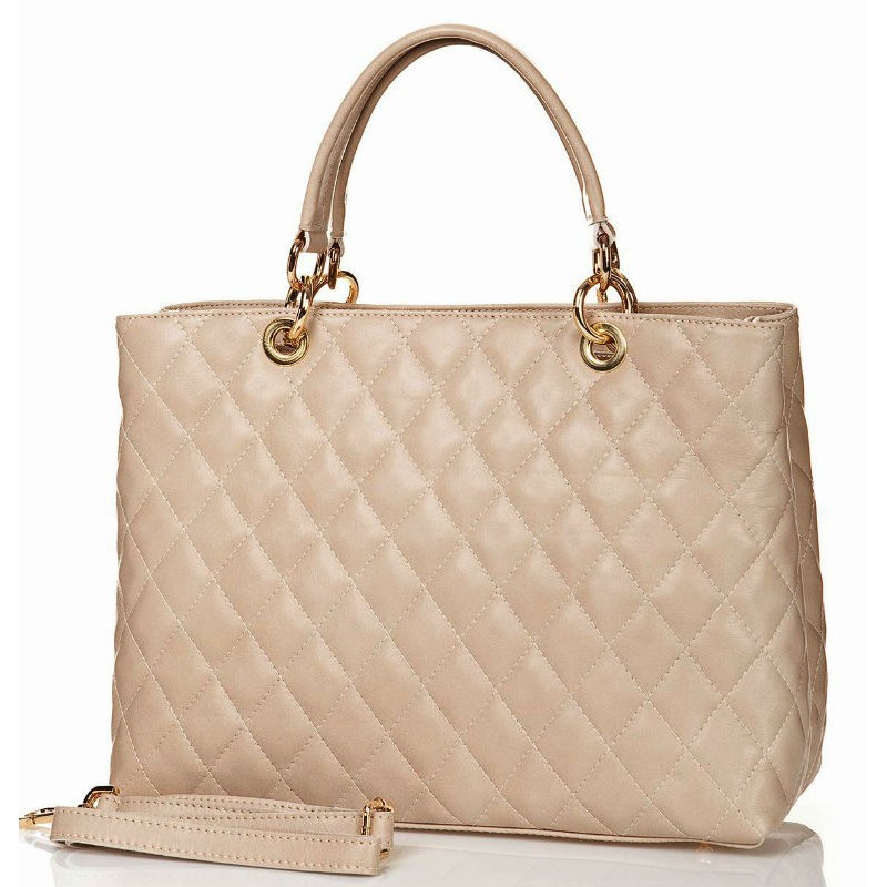 - Итальянская стеганая кожаная женская сумка Bottega Carele BC104-beige бежевая.