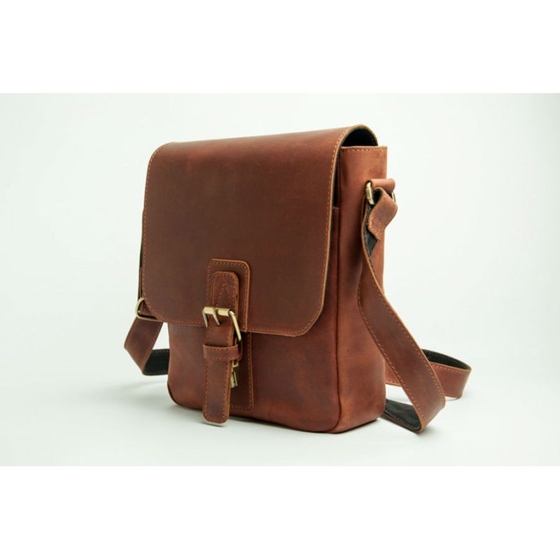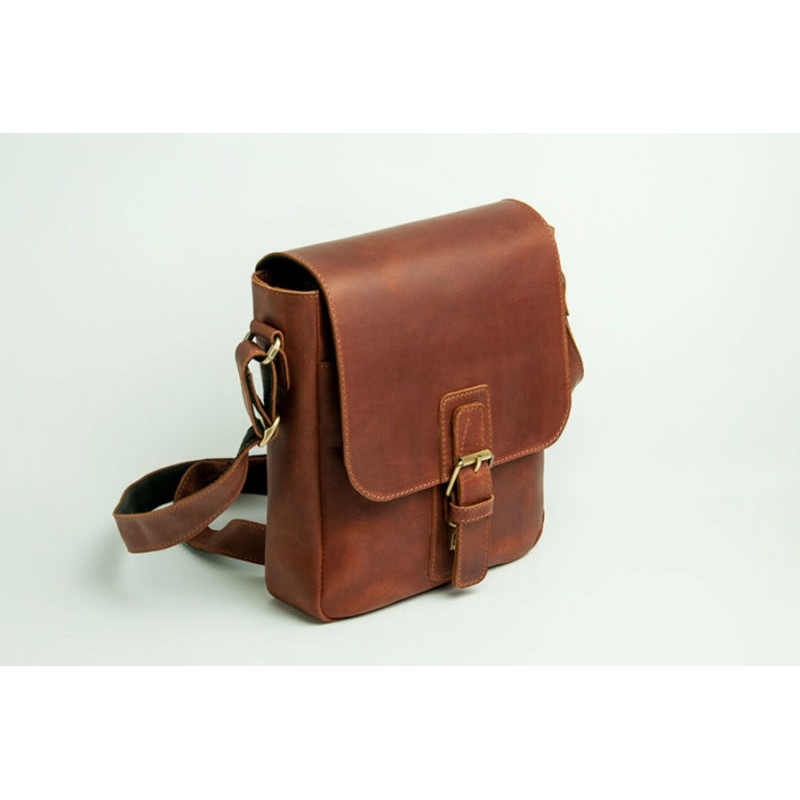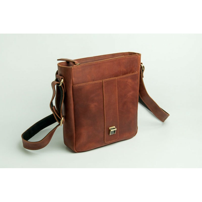 - Мужская кожаная сумка мессенджер Wellbags Messenger Arcturus Ocher W054.1 темно-рыжая из винтажной кожи.