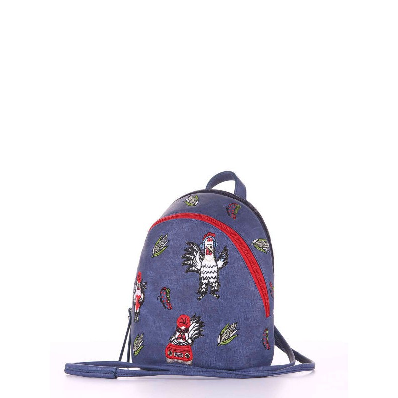 - Мини-рюкзак Alba Soboni 180215 синий с вышитыми курицами.