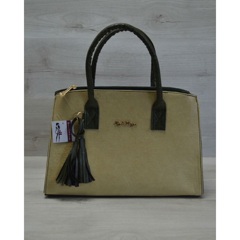 - Модная молодежная женская сумка Welassie Кисточка оливковый гладкий 52021.