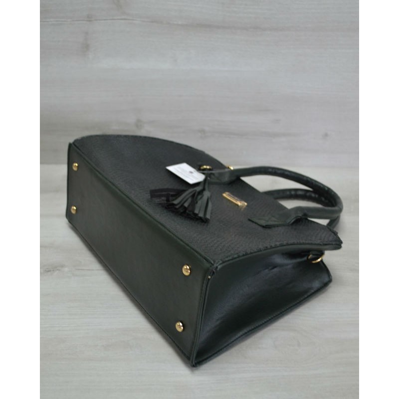 - Вместительная молодежная женская сумка Welassie Кисточка зеленая змея 52019.