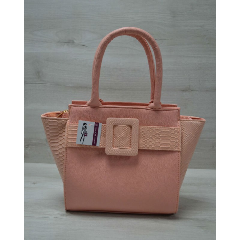 - Молодежная женская сумка Welassie Комбинированная пудрового цвета с пудровым ремнем 52210 изготовлена из кожи PU.