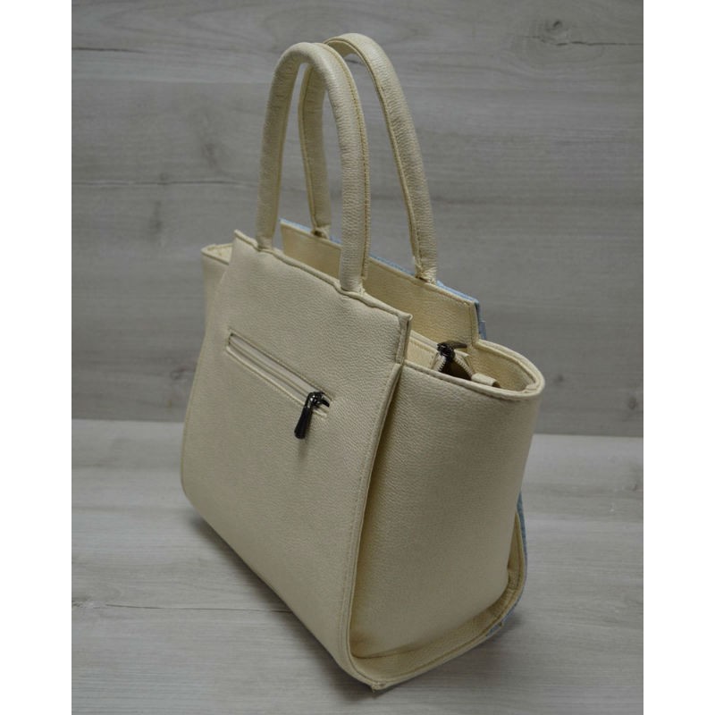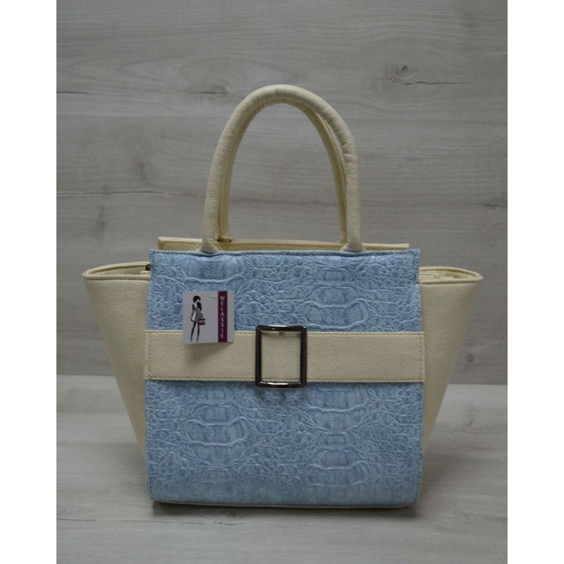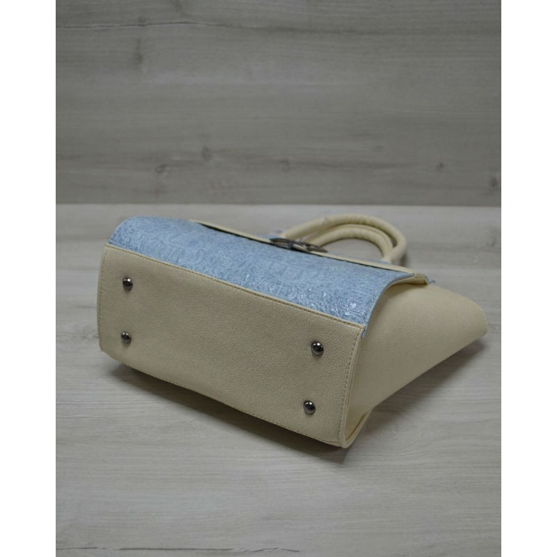 - Молодежная женская сумка Welassie Ремень голубой крокодил с бежевым гладким 52904 из эко кожи.
