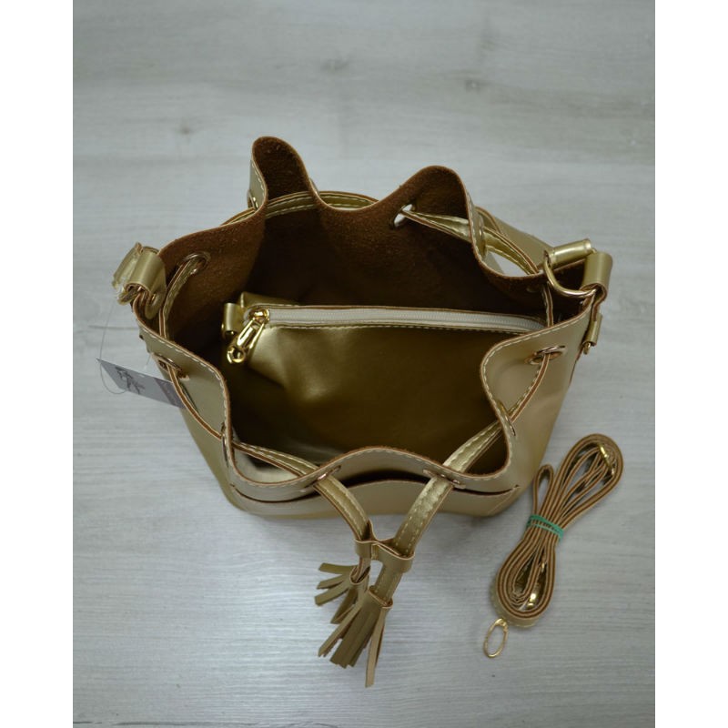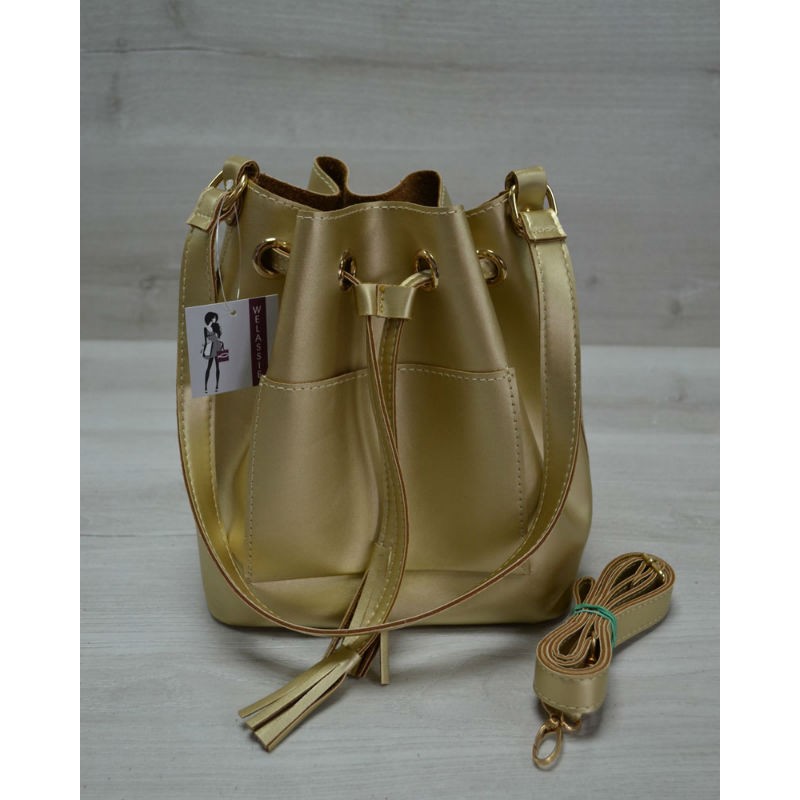 - Изысканная молодежная сумка Welassie из эко-кожи Люверс золотого цвета 23107.