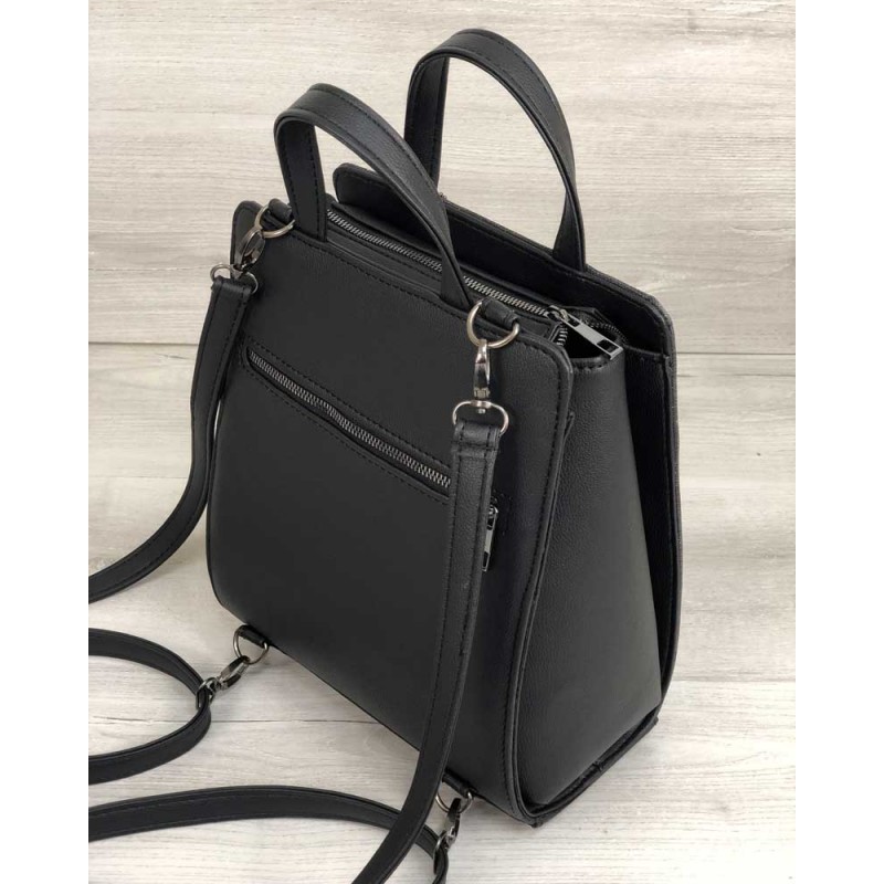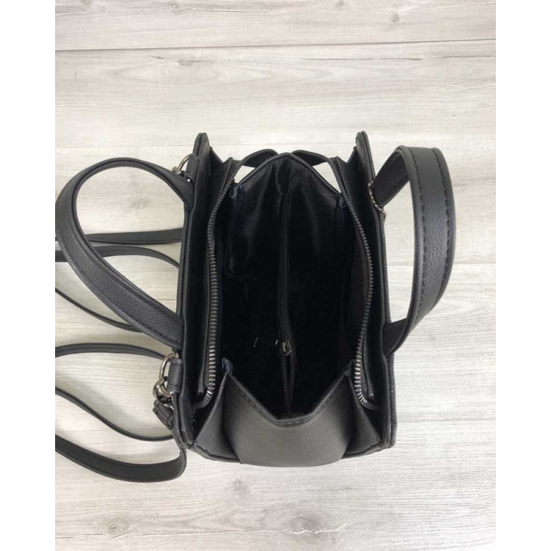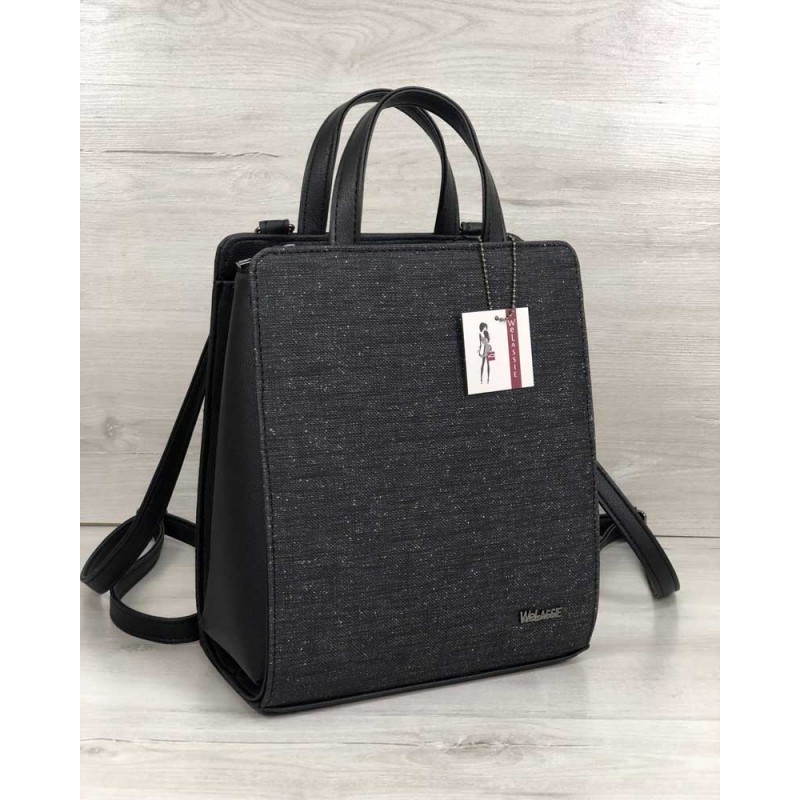 - Удобный молодежный каркасный сумка-рюкзак Welassie черного цвета со вставкой блеск 44802.