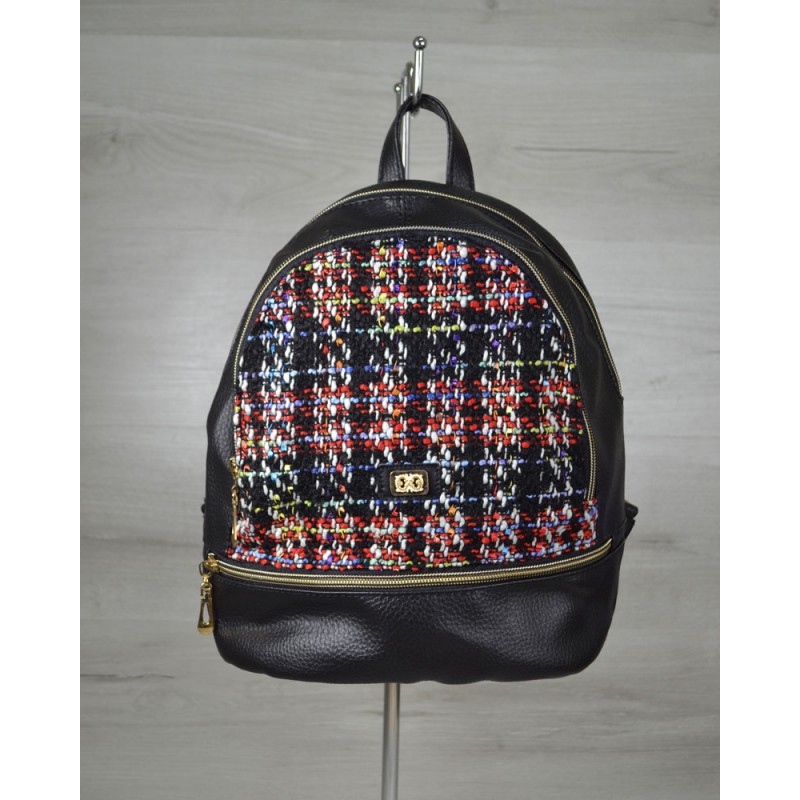 - Молодежный рюкзак Welassie черный с клетчатой вставкой 43902 изготовлен из искусственной кожи.
