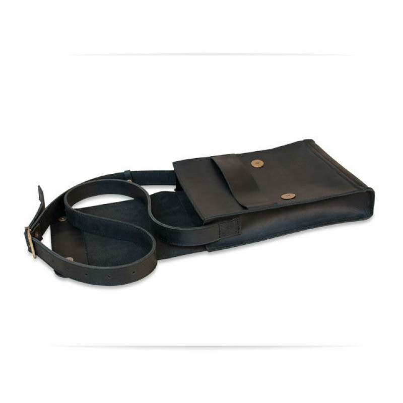 - Кожаный плотный ремень регулируется по длине и удобно размещается на плече.