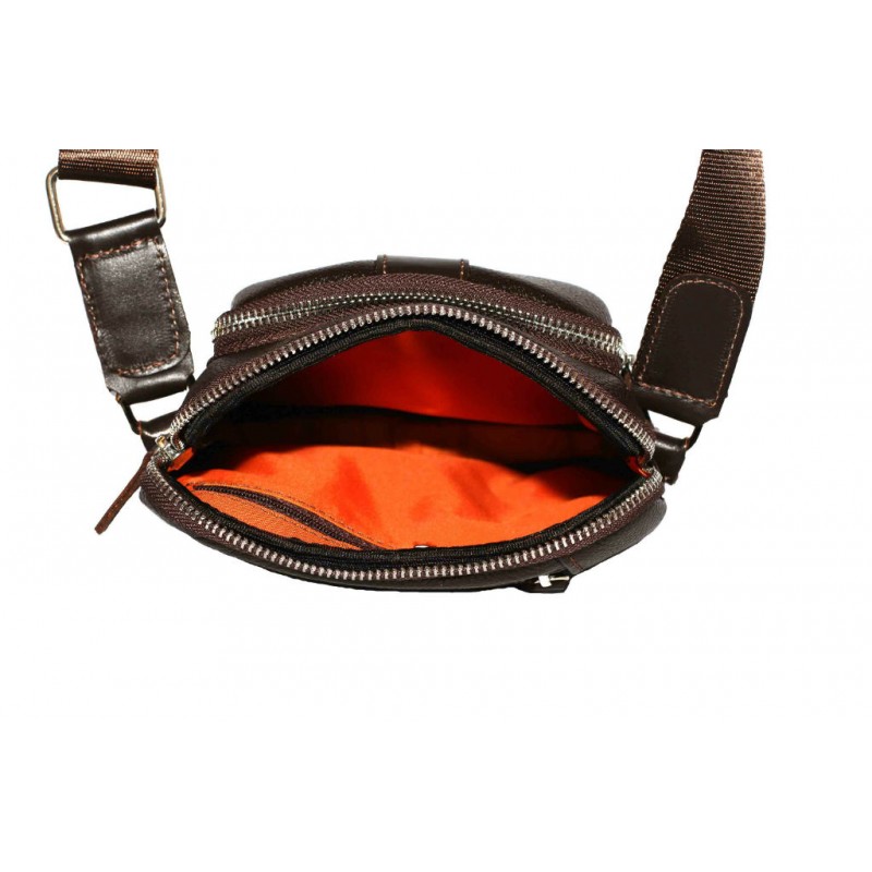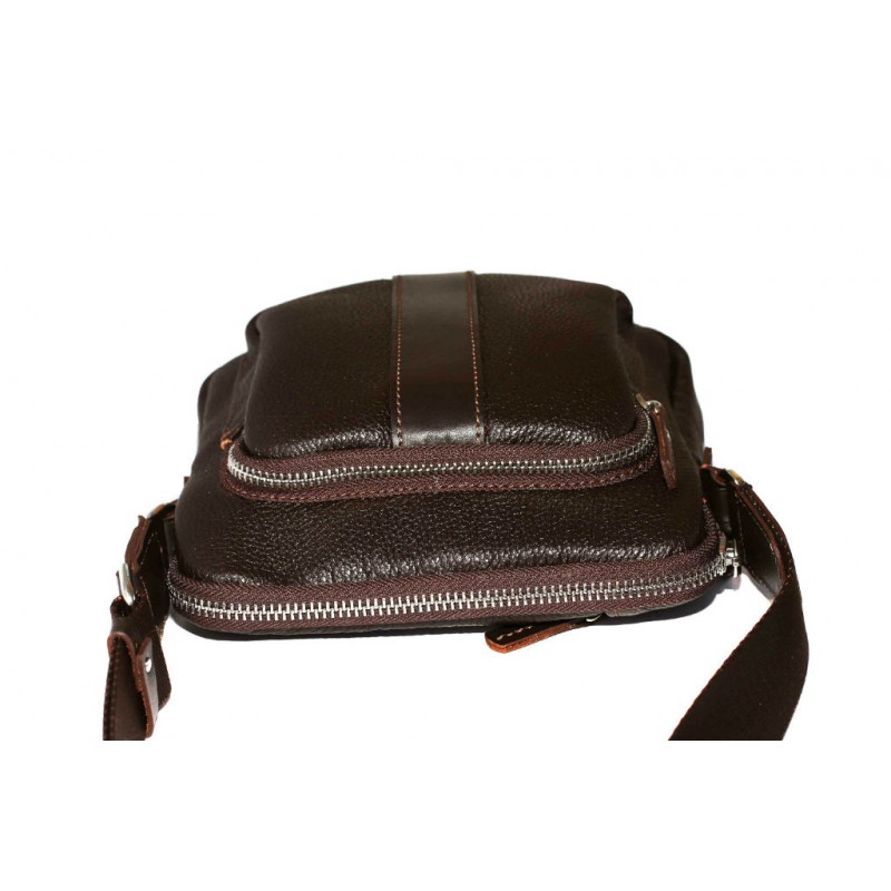 Однотонная мужская кожаная сумка VATTO Mk48FL3Kаz400 коричневого цвета украшена на лицевой части прямыми строчками.