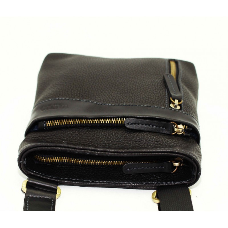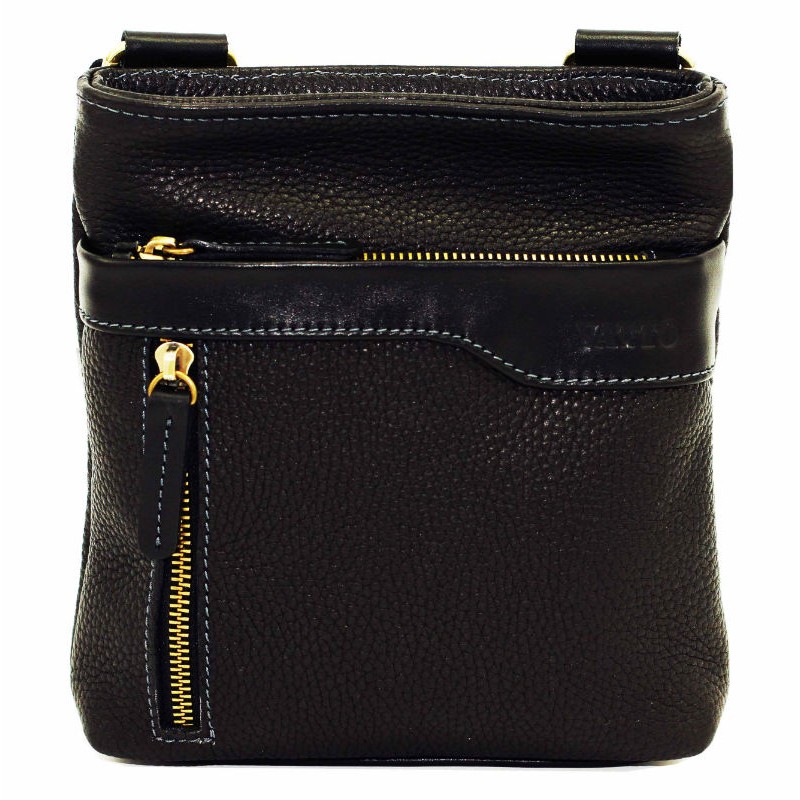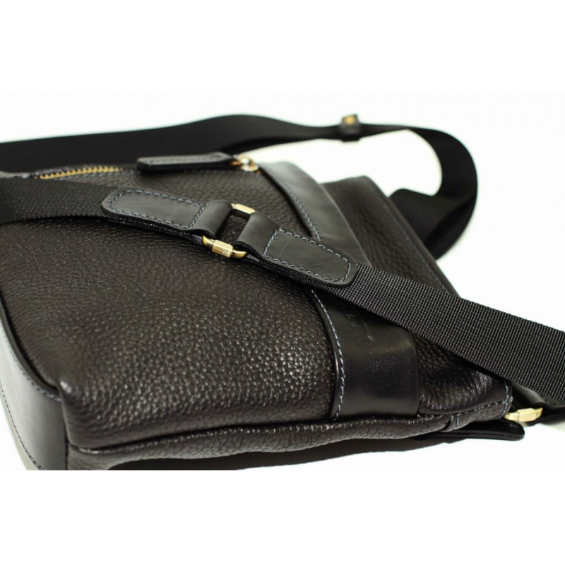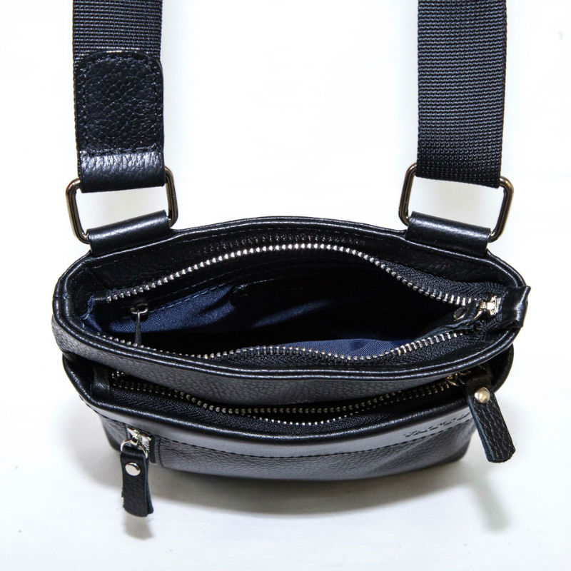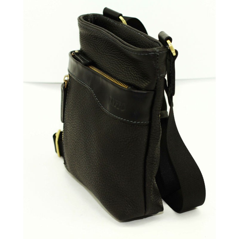 - Мужская сумка маленькая VATTO Mk13Fl8Kaz1 черная выполнена из натуральной кожи флотар.
