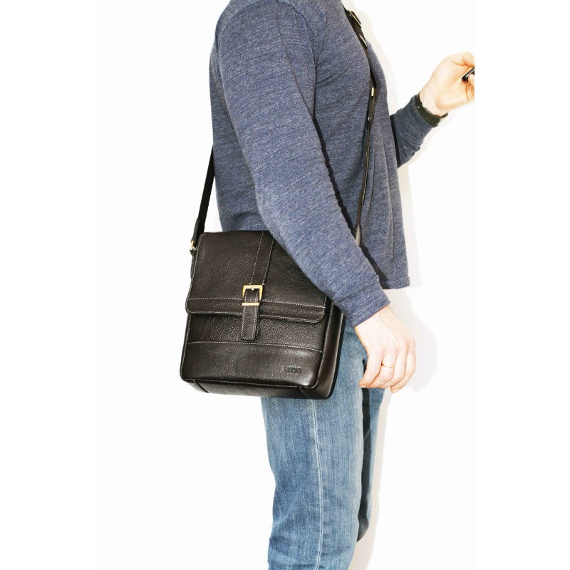 - Стильная мужская сумка VATTO Mk17FL8Kaz1 черная сделана из высококачественной кожи флотар.