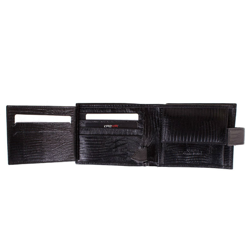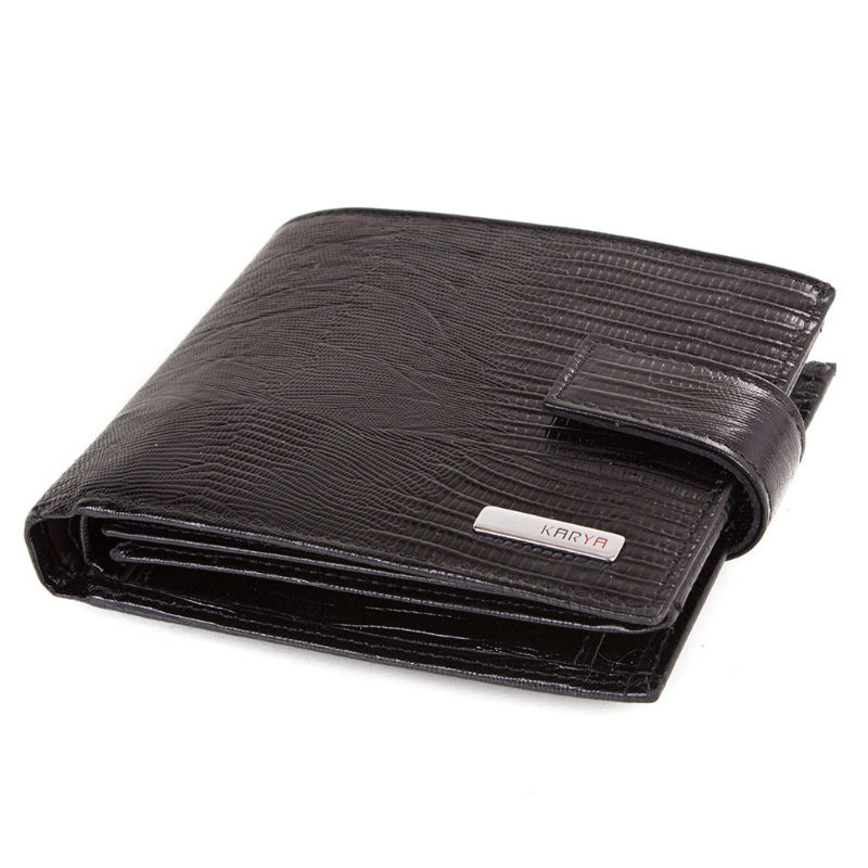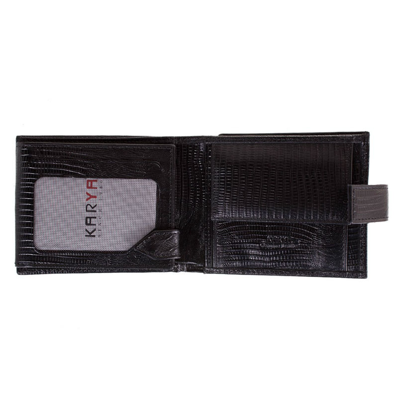 - Горизонтальное мужское портмоне KARYA 0464-076 черное из тисненной натуральной кожи.