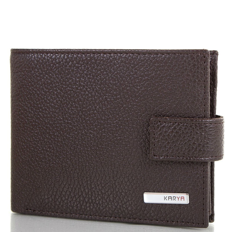 - Кожаное мужское портмоне KARYA 0464-39 коричневое горизонтальной ориентации.