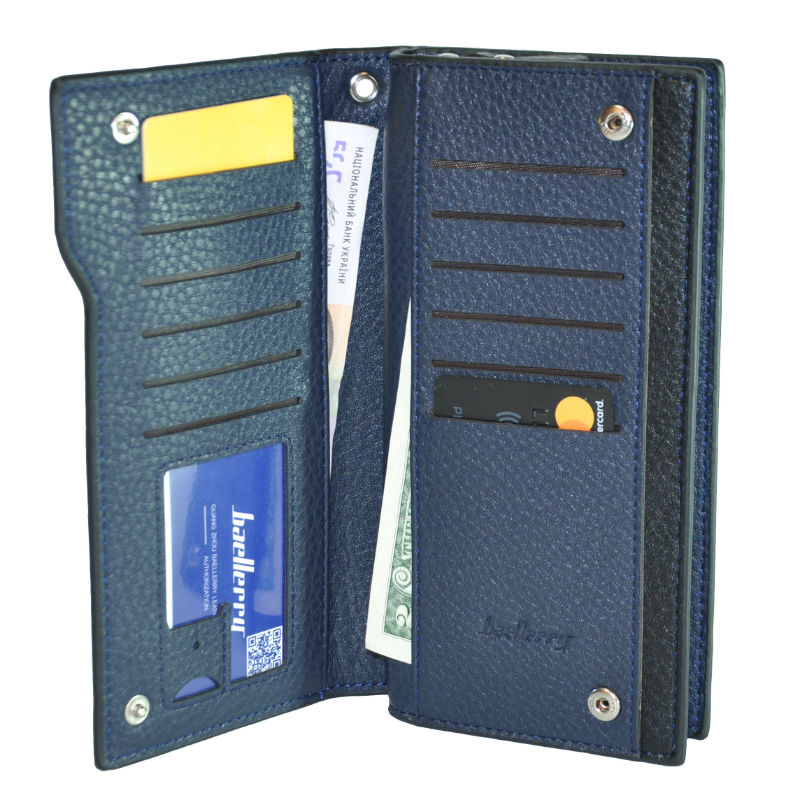 Мужское портмоне Baellerry Italia New черное с синим стильное и удобное.