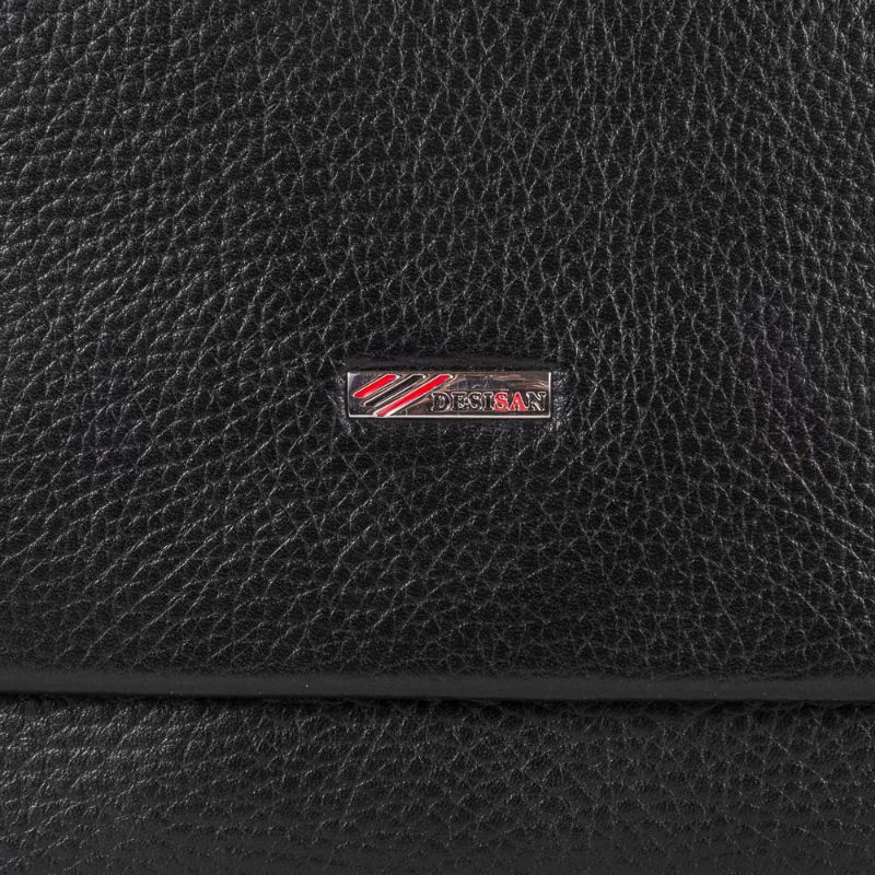 - Мужская сумка DESISAN 344-01 черная выполнена из натуральной кожи с зернистой текстурой.