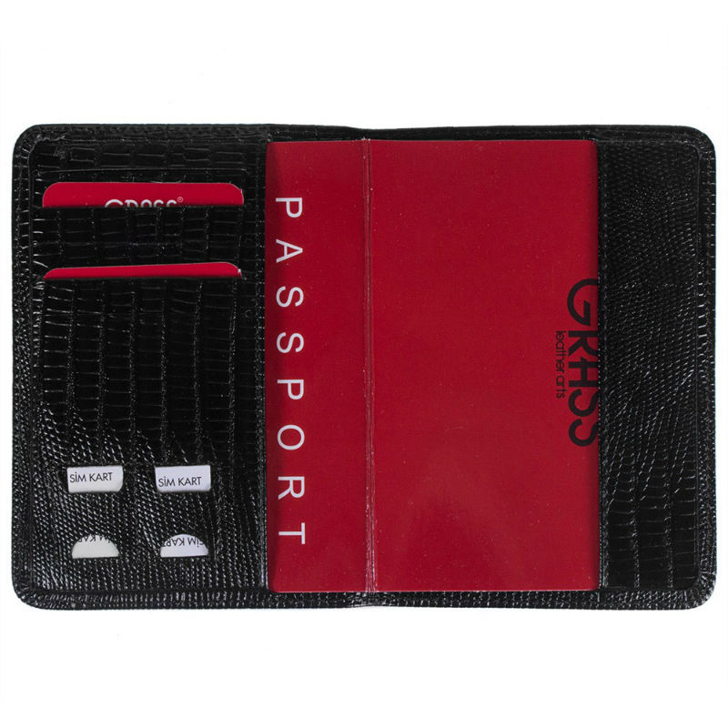 - Красивая обложка для паспорта кожа GRASS 570-32 черный лазер.