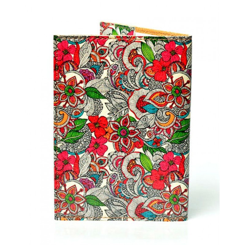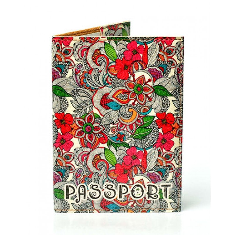 Обложка на паспорт белая с разноцветными абстрактными цветами.
