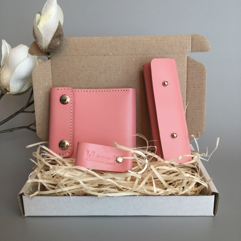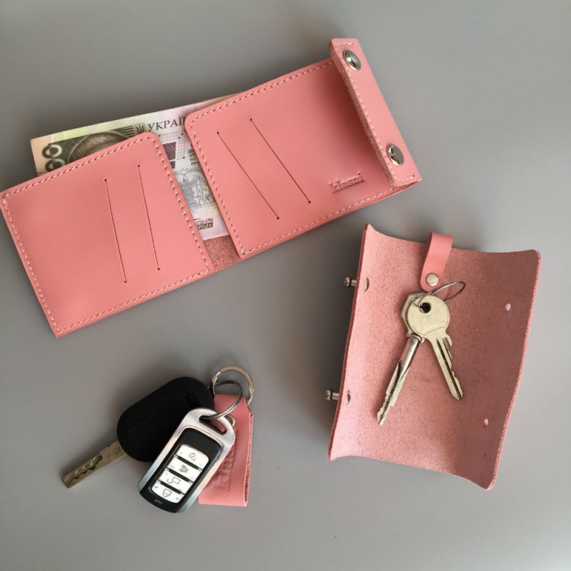 - В набор входить мини кошелек (размер 10,5*8,5 см), ключница (12*4,5 см) и брелок.