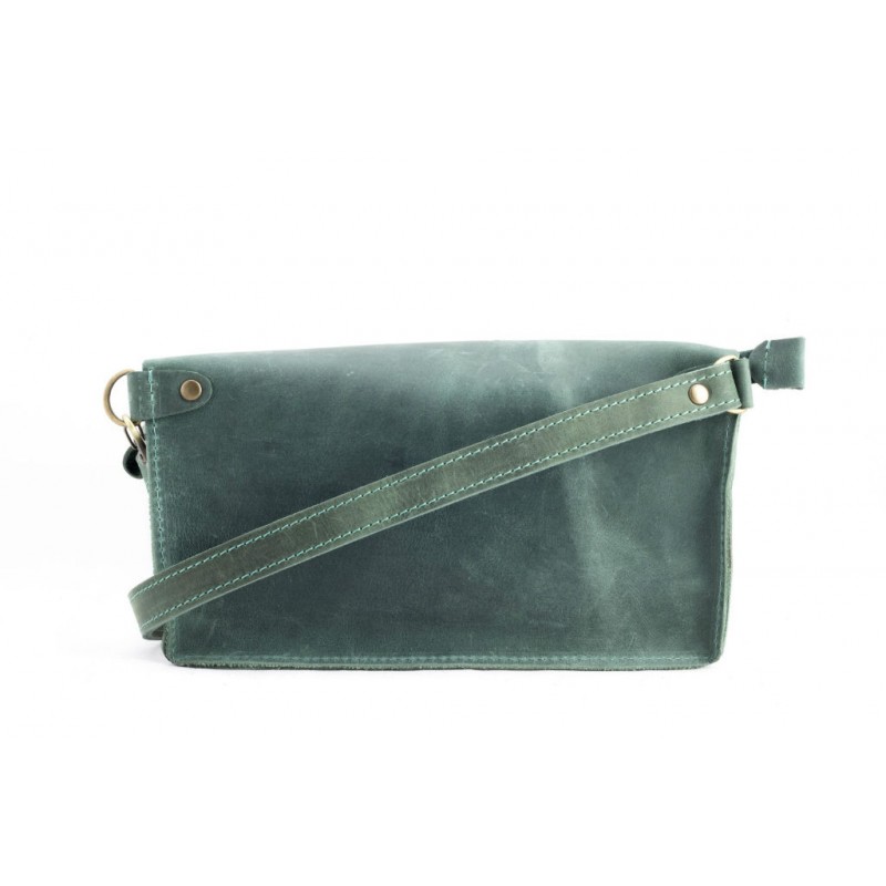 - Поясная кожаная сумка Виноград зеленая из винтажной натуральной кожи Crazy Horse.