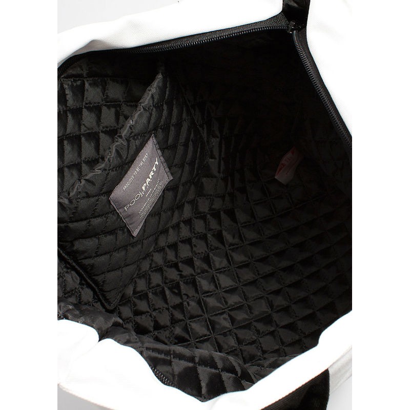 - Коттоновая сумка POOLPARTY pool-9-white белая с черными ручками и принтом кенгуру спереди.