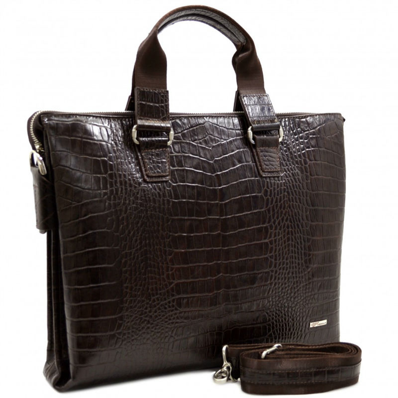 - Мужской кожаный портфель Desisan 1341-19 коричневый выполнен из натуральной кожи с тиснением под крокодил.
