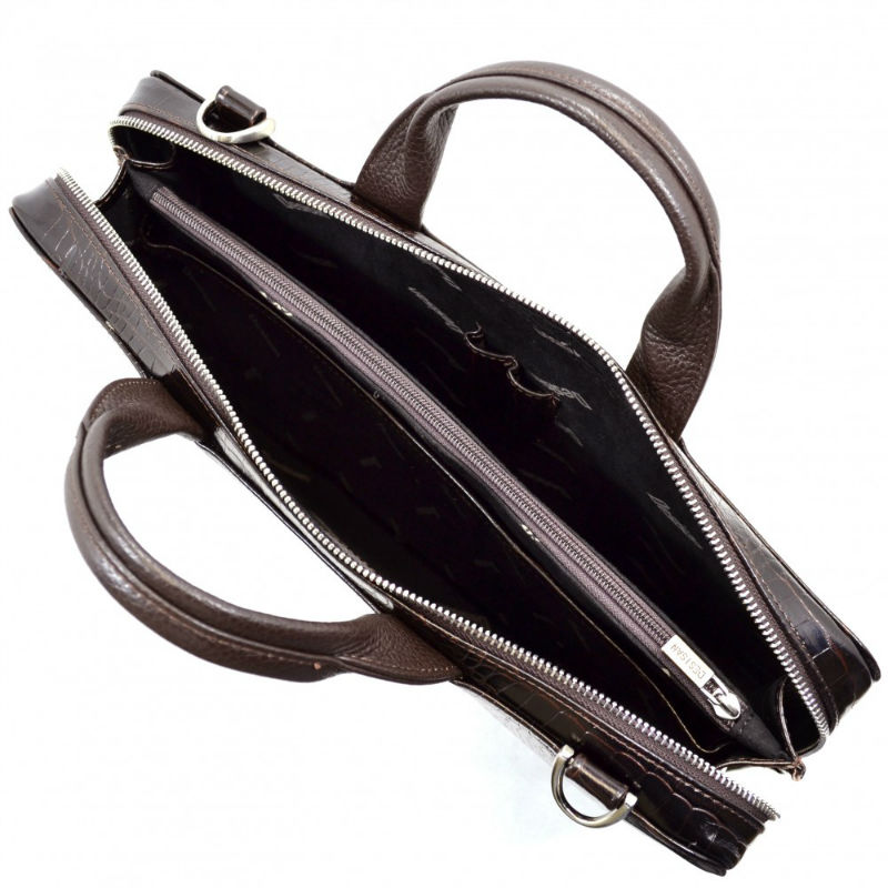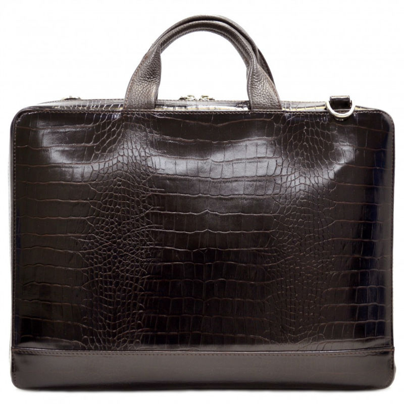 - Стильный мужской портфель Desisan 1347-19 коричневый изготовлен из натуральной кожи с крокодиловым тиснением.