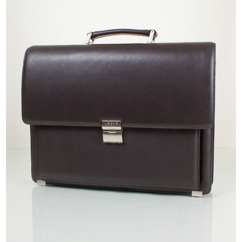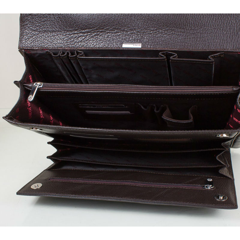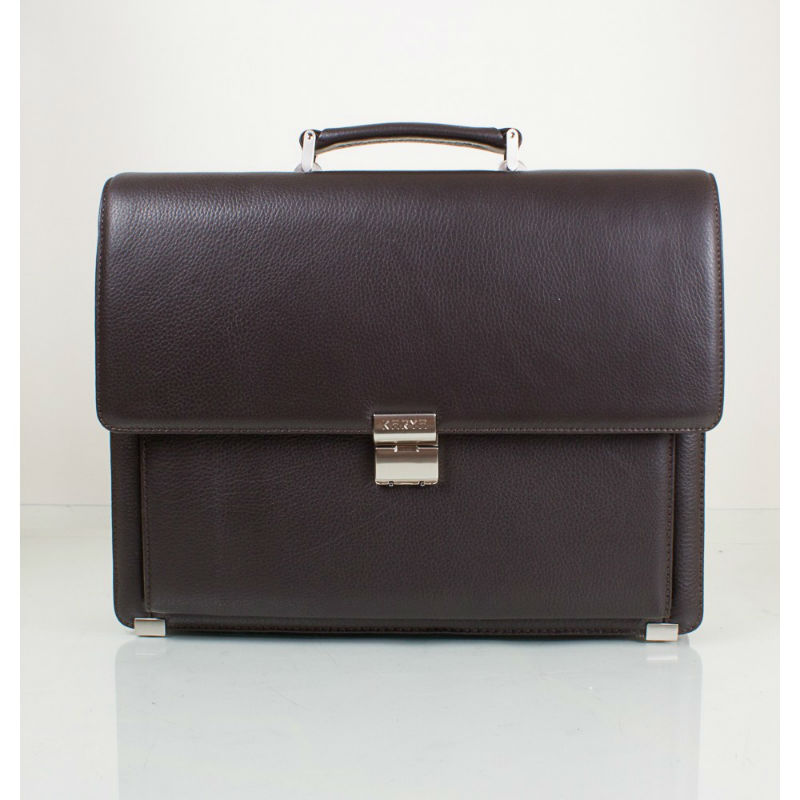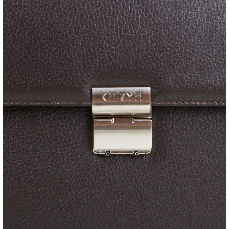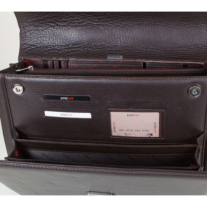 - Стильный кожаный портфель KARYA 0144-39 коричневого цвета из кожи флотар.