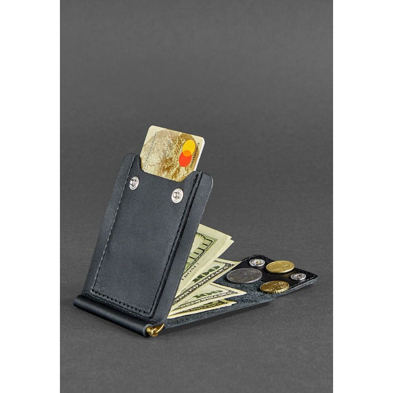 - Состоит из зажима для купюр, монетницы, кармана для карточки.