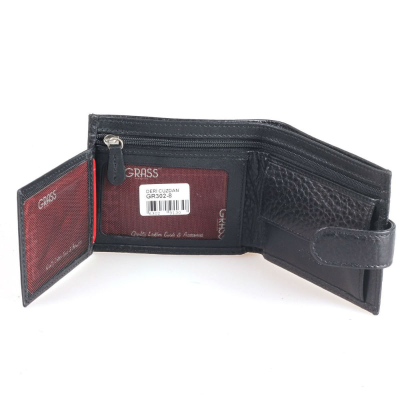 - Горизонтальное мужское кожаное портмоне GRASS 302-8 черный флотар.