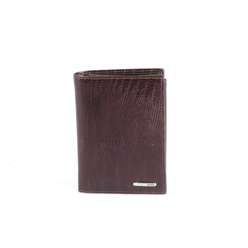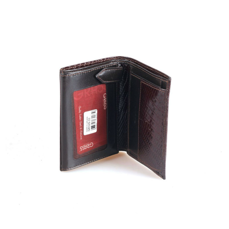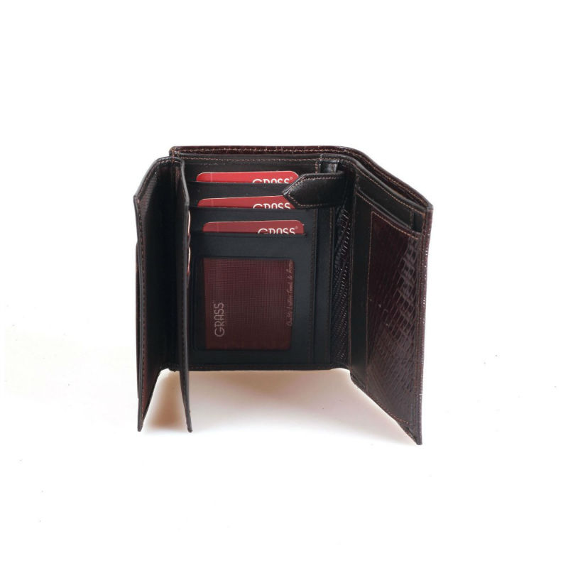 - Вертикальное кожаное мужское портмоне GRASS 325-33 коричневое изготовлено из натуральной кожи с тиснением.