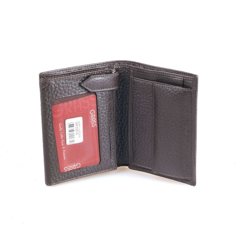 - Вертикальное кожаное мужское портмоне GRASS 325-9 коричневый флотар.
