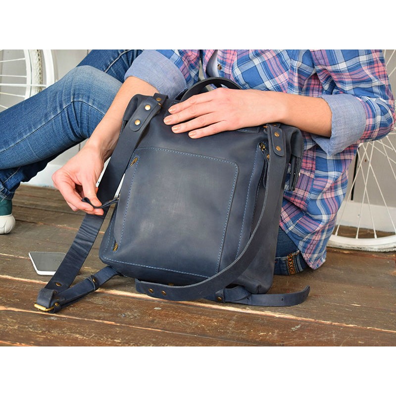- Рюкзак городской MONE Blue 897062 синий изготовлен из натуральной кожи "crazy horse".